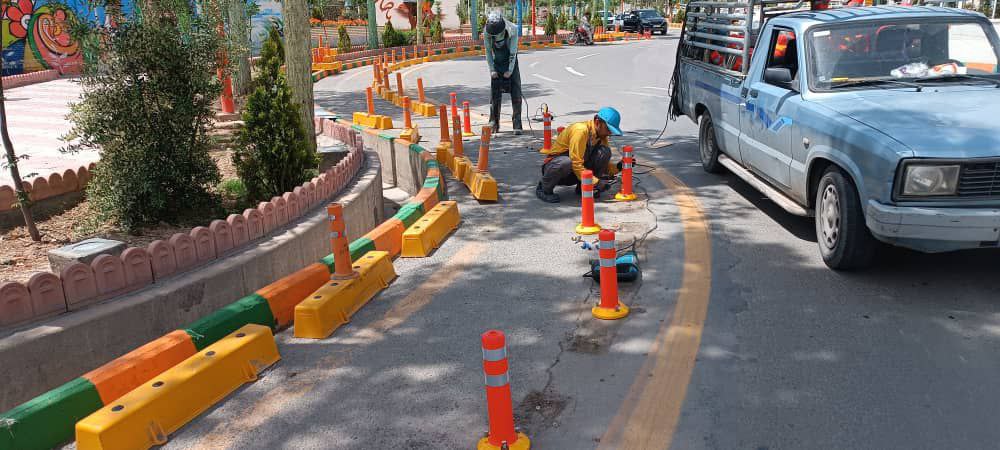 - 🚧 نصب جداکننده پلاستیکی مارک نوبرپارت به منظور تفکیک مسیرها و هدایت ایمن جریان خودروها.